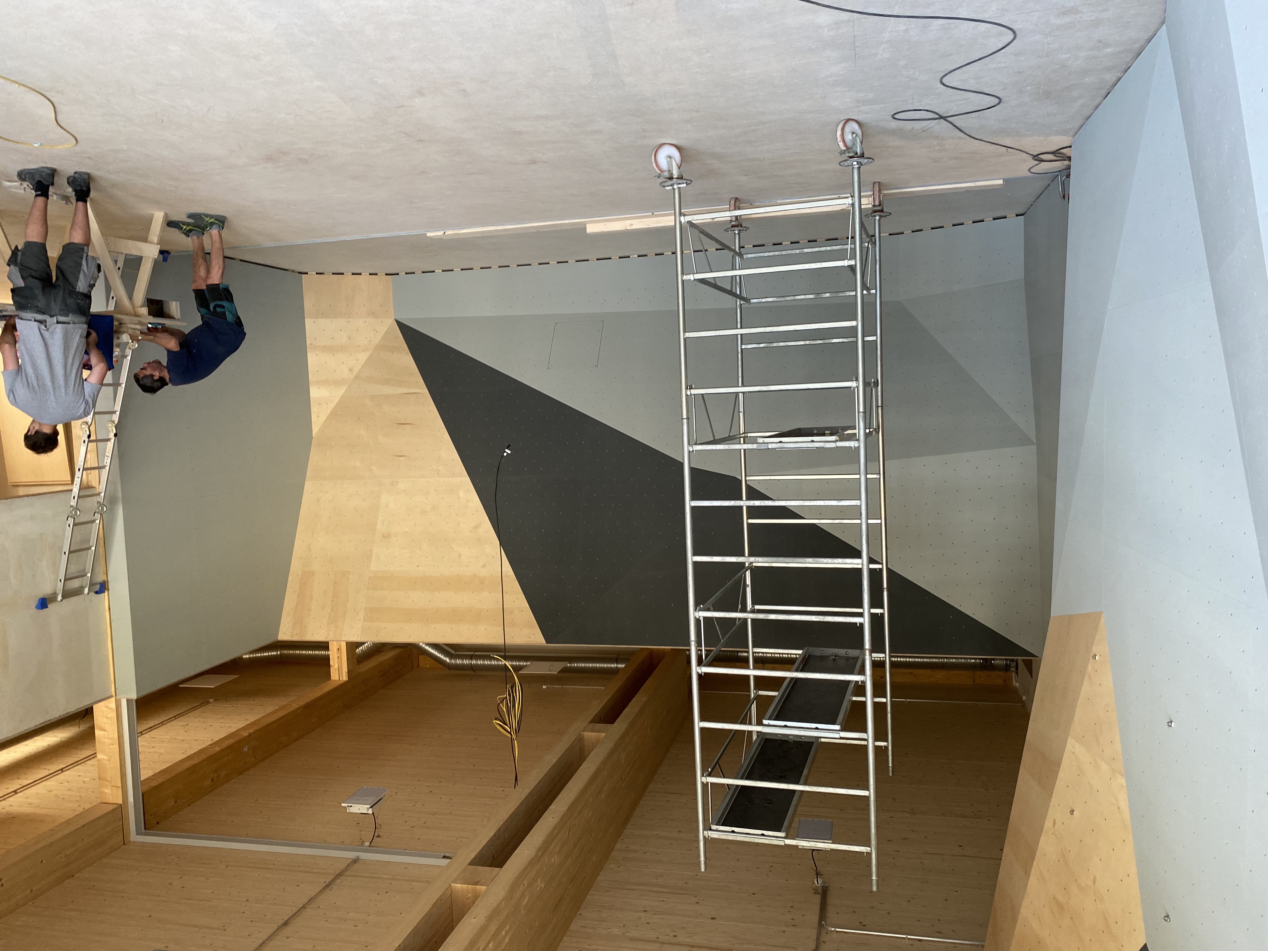 Im EG ist die Trainingsboulderwand und die Schulungswand fertig.