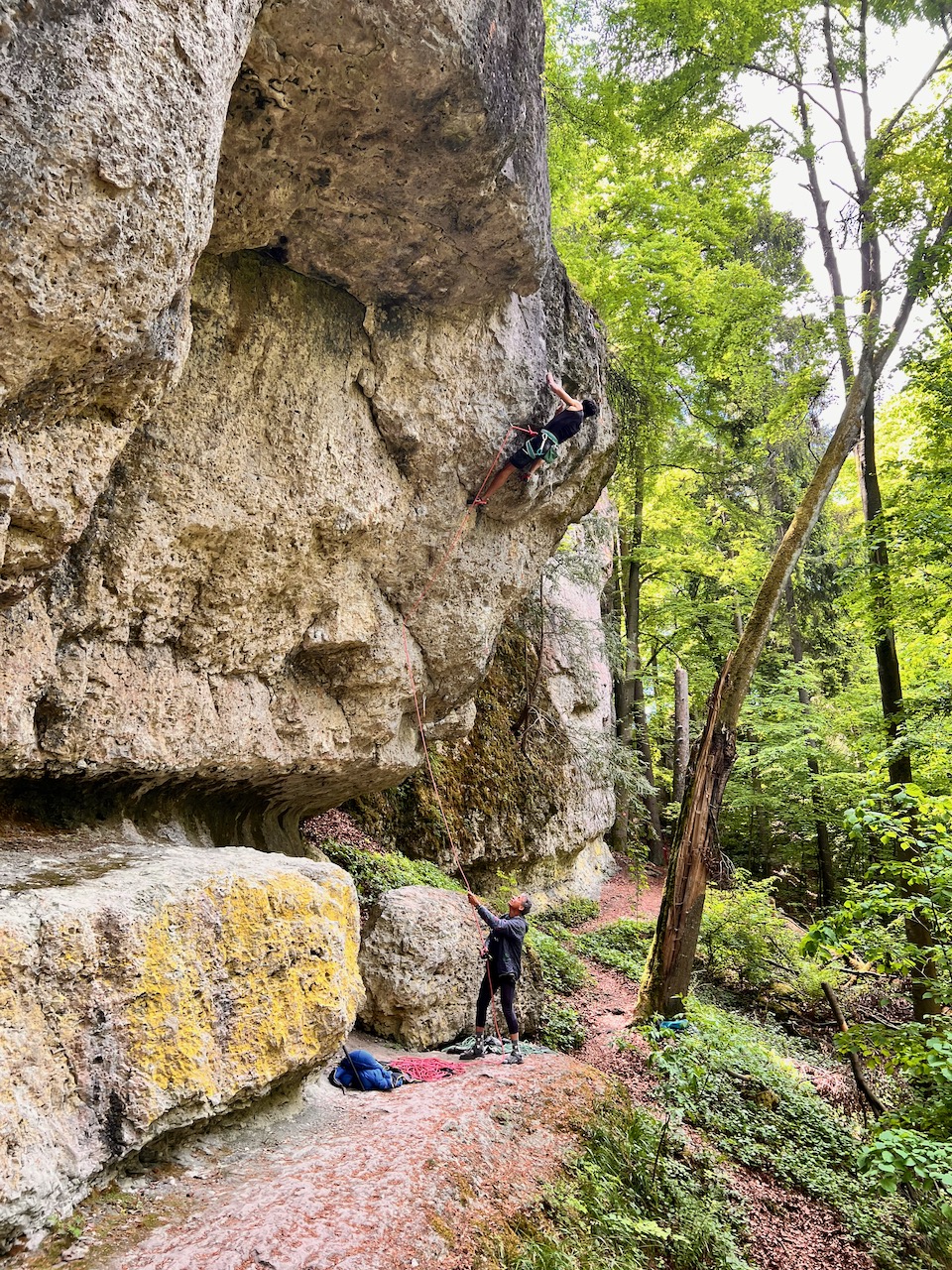 Genussklettern in der Fränkischen Schweiz / Püttlachtal - Vorstieg und Toprope in festem Fels.